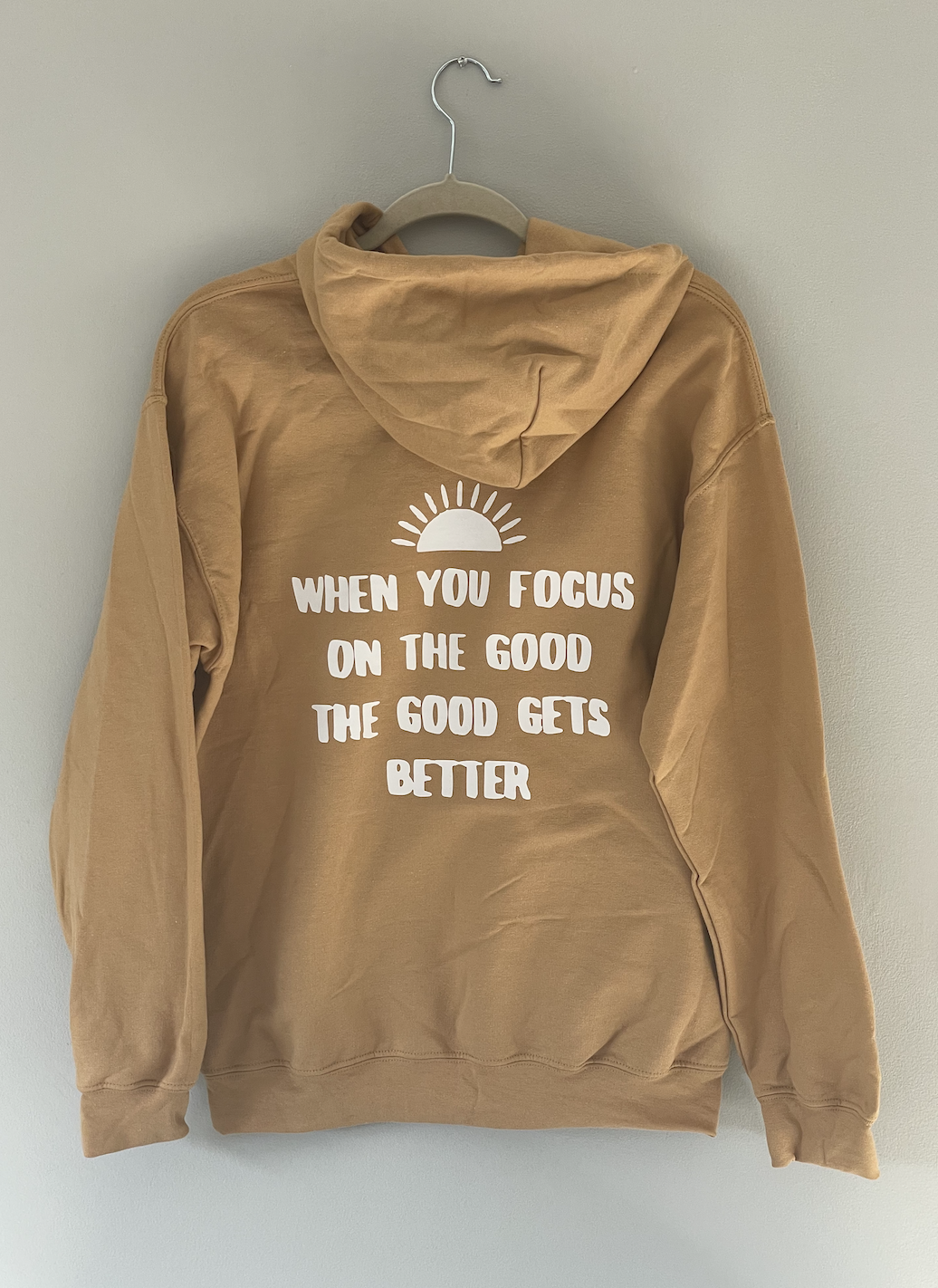 Soft old gold colored hoodie! Smiley face on the front is optional so please select it if you want it on yours!